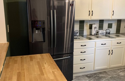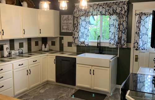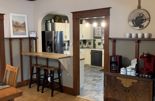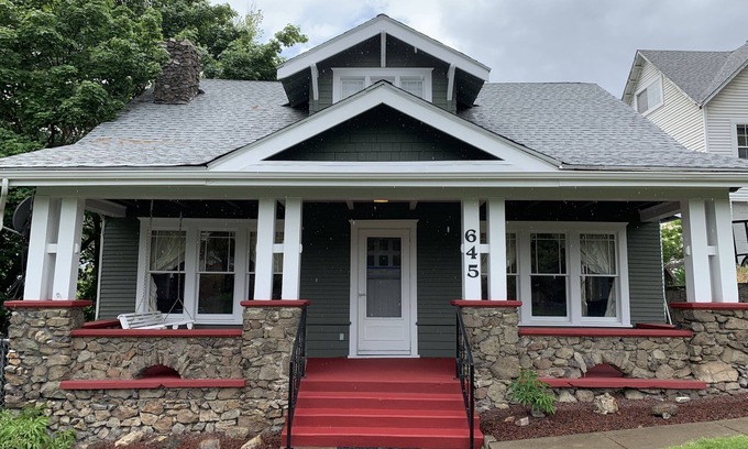 Relax in this beautifully remodeled 1917 mission style home. Featuring original maple floors. You can relax by the pellet fireplace in the living room or enjoy a family meal in the large dining room. Complete with a breakfast bar and a coffee corner, coffee and teas provided! Our family room has a 58” tv with a DVD player & movies to watch. There is also WiFi with up to 200 mbps internet. There is fully stocked kitchen (you bring the food) with all new appliances. The bathroom boasts a large walk-in shower, towels and soaps are supplied. There are two bedrooms, one with a queen bed and a large walk-in closet with a stackable washer & dryer (laundry soaps available). The other bedroom has a full size bed. Both are complete with linens. And you can enjoy the view of Colville mnt while sitting on the porch swing.