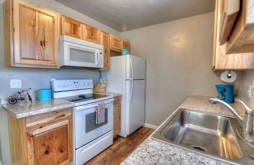 Centrally located, sparkling clean townhouse w/ available bike storage and lots of parking. This unit has a private, fully fenced patio with BBQ grill and outdoor dining so you can fully enjoy the Colorado sunshine. Fully stocked kitchens for cooking. Upgraded memory foam mattresses and deluxe pillows for a good nights rest. Centrally located to all activities the Grand Valley has to offer. CMU, Colorado National Monument, Mountain biking, hiking, Fruit and Wine Byway, and much more.