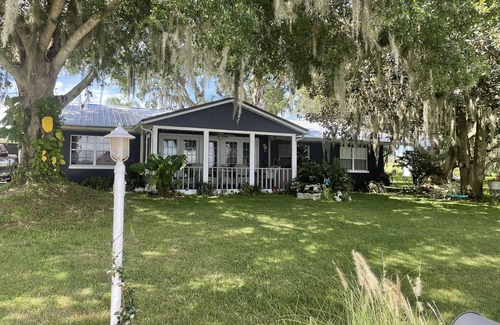 This home is best suited for a quiet getaway Enjoy your coffee on this beautiful front porch overlooking the Lake. This home is tucked back in a quiet neighborhood with wispy tree lined streets. Perfect spot for walking or biking while taking in the scenery. The fishing is great off of the private dock. This lake home is centrally located with a 90 minute drive either to the Gulf of Mexico, or the Atlantic Ocean. 1 Hour and 15 minutes south of Orlando (Disney). Legoland is an easy 30 mile drive. Get all of your necessities at the grocery store right around the corner only a mile away. Sebring is also just a 10 minute drive up the road with several great choices in restaurants. Watch a rocket launch from the backyard all the way from Kennedy Space Center! Several golf courses nearby, 15 minutes from the Sebring Race Track. Nest doorbell camera and Ring floodlight camera focused on driveway only recently installed for your safety and ours. No children allowed on the dock or in the water without an adult. Children and adult life jackets available under carport in outside cubbard.