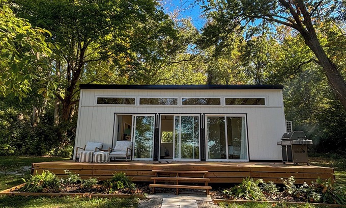 Enjoy comfort and tranquility at our centrally located modern ranch tucked away in a private setting overlooking Downtown STL and close to all St. Louis Attractions. Sleeps 2. Complementary such as bottled water, a bottle of wine and continental breakfast will pamper you the moment you arrive.Unwind in our memory foam mattress, luxurious multifunction shower or take a refreshing rain shower outdoors! Play mini golf on our scenic driving mat or unwind around our outdoor fire pit. Licensed massage therapy and nail care services are available for an additional fee. Pet friendly. Free private onsite parking.