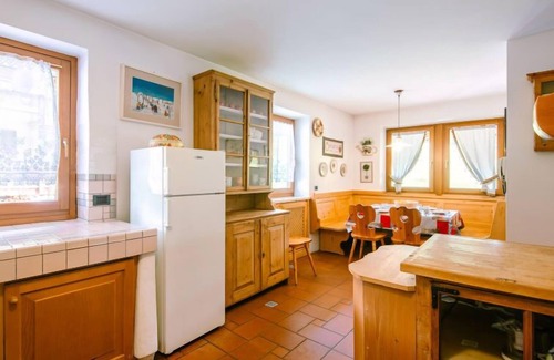 Penia 3 km from Canazei: Child friendly, comfortable chalet "Cesa Galadriel", 1'555 m a.s.l 2 storeys. 3 apartments in the property. In the hamlet Penia, 1.5 km from the centre of Alba, 3.5 km from the centre of Canazei, in a quiet position, 1 km from the skiing area, south-west facing position. In the house: central heating system, heating available only from 01.Dec. - 01.May.. Parking (limited number of spaces) on the premises, public parking 500 m on the road. Shop 300 m, grocery 100 m, restaurant, bus stop 100 m. Mountain railway 1 km. Please note: car recommended. In case of good snow conditions, the house is accessible on skis.