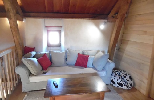 -The mezzanine is equipped with a sofa bed and armchairs, a large TV and a Wii U with some games.