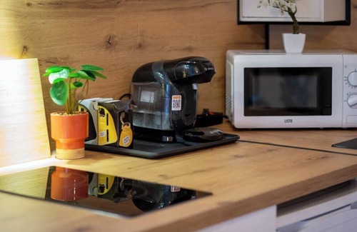 The kitchen is equipped with the essentials to prepare your meals. You'll find a hob, microwave, fridge and basic utensils.