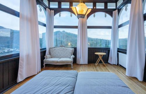 Château Constance, 19 personnes is a recently renovated villa in La-Roche-en-Ardenne, near The Feudal Castle. This property offers access to a balcony, free private parking, and free Wifi. The villa provides a picnic area and a 24-hour front desk. Providing a terrace and river views, the spacious villa includes 10 bedrooms, 2 living rooms, flat-screen TV, an equipped kitchen, and 4 bathrooms with a shower. Guests can enjoy a meal on an outdoor dining area while overlooking the garden views. For added privacy, the accommodation features a private entrance. Guests at the villa can enjoy hiking nearby, or make the most of the garden. Plopsa Coo is 26 miles from Château Constance, 19 personnes, while Barvaux is 17 miles away. Liege Airport is 52 miles from the property.