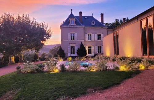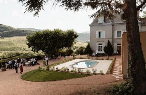 Château des Vierres in Lantignié provides accommodations with a garden and barbecue facilities. This property offers a pool with a view, free Wifi, and free private parking. Guests can use the hot tub and open-air bath, or enjoy garden views. The vacation home provides guests with a terrace, pool views, a seating area, a flat-screen TV, a fully equipped kitchen with a dishwasher and an oven, and a private bathroom with shower and a hair dryer. A microwave, a toaster, and fridge are also provided, as well as a coffee machine and a kettle. At the vacation home, every unit includes bed linen and towels. A selection of options including fresh pastries, fruit, and juice are served for the continental breakfast. For visitors looking to embark on day trips to nearby landmarks, Château des Vierres provides a selection of packed lunches. Mâcon Exhibition Center is 22 miles from the accommodation. Lyon - Saint Exupery Airport is 46 miles away.