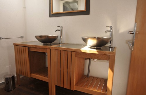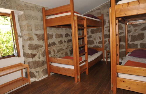 Bedroom of 4 bunk beds on the floor of an old cottage in an old barn. Shower, 2 sinks, 2 separate toilets, living room with kitchenette, common to 2 bedrooms of 4.