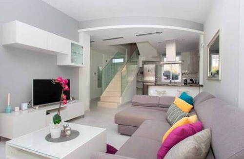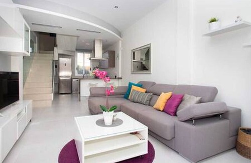 The accommodation comprises of 3 bedrooms with built-in-wardrobe, 2 bathrooms (2 en-suite), fully equipped open plan kitchen and a stylish living room with a large chaise-longue and LED TV with international channels.