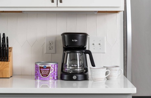 • Regular drip coffee maker with coffee, sugar, and creamer provided