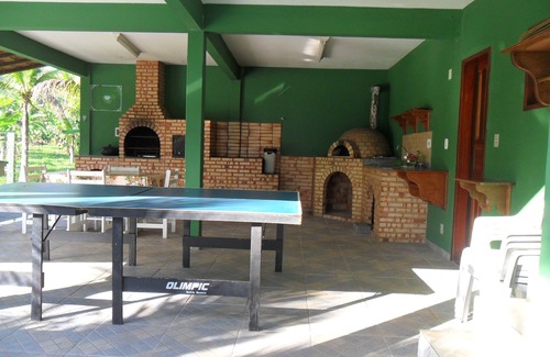 The 1,800 m2 property contains: landscaped and wooded outdoor spaces, large play area with balconies with hammock hooks, 31,000 l swimming pool, grassy soccer field, children's playground (overhead playhouse, slides and swings) , barbecue, wood burning stove, pizza oven in the wood; house with two floors; 3 bedrooms upstairs, well ventilated, all with ceiling fan and furnished (4 single beds, 2 double, plus mattresses); living room with sofa set, cable TV, dvd player and stereo; wifi available; 2 bathrooms with hot showers; kitchen equipped with cabinets, blender, fridge freezer, industrial stove, common stove, pots, glasses, plates, cutlery and other necessary utensils. We do not serve meals. Family environment Pets are welcome. Beautiful and peaceful place, inhabited by wild animals and surrounded by mountains covered by rainforest, ideal for those who want to rest and relieve stress.