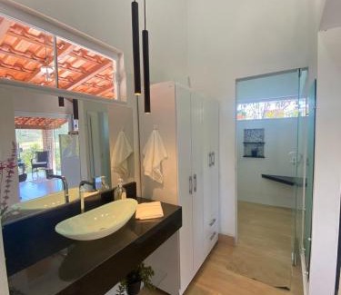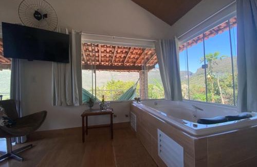 29 miles from Pai Inacio Mountain in Palmeiras, chalé águas claras features accommodations with access to a hot tub. This property offers access to a balcony and free private parking. Guests can use a terrace. With free Wifi, this 1-bedroom chalet offers a flat-screen TV and a kitchen with an oven and fridge. Towels and bed linen are featured in the chalet. The property has an outdoor dining area. Guests can also relax in the garden. Lençóis Airport is 44 miles away.