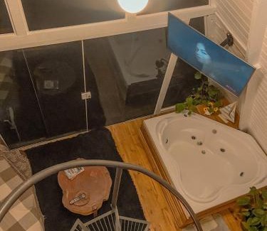 Featuring a garden, Chalé A-Frame as Margens do Rio Marrecas provides accommodations in Mangueirinha. This property offers access to a patio, free private parking, and free Wifi. Providing a balcony and lake views, the chalet includes 1 bedroom, a living room, flat-screen TV, an equipped kitchen, and 1 bathroom with a hot tub and a shower. Towels and bed linen are provided in the chalet. The accommodation is non-smoking. Pato Branco Airport is 51 miles away.