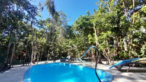 Featuring inner courtyard views, Chalés Guigó-Cumuruxatiba, Simplicidade e sossego in Cumuruxatiba offers accommodations, an outdoor swimming pool, a garden, and barbecue facilities. There's a private entrance at the chalet for the convenience of those who stay. The chalet features rooms with air conditioning, free private parking, and free Wifi. The chalet provides guests with a balcony, pool views, a seating area, satellite flat-screen TV, a fully equipped kitchen with a microwave and a toaster, and a private bathroom with shower and a hair dryer. A patio with an outdoor dining area and garden views is offered in each unit. At the chalet complex, every unit is equipped with bed linen and towels. Guests at Chalés Guigó-Cumuruxatiba, Simplicidade e sossego will be able to enjoy activities in and around Cumuruxatiba, like hiking.