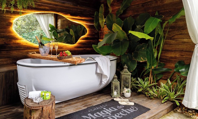 Best-rates for the Chalés Magia do Campeche starts from $179 per night with includes Balcony/Terrace, Accessibility, Bedding/Linens, Wellness Facilities, Barbecue/Outdoor Cooking, Internet, Air Conditioner, Parking, Hot Tub, Kitchen with all other amenities. Perfect for Weddings is committed to ensuring every guest experiences a comfortable and extraordinary stay, whether planning a romantic getaway, a honeymoon, a pet-friendly stay, or celebrating with the entire wedding party.
