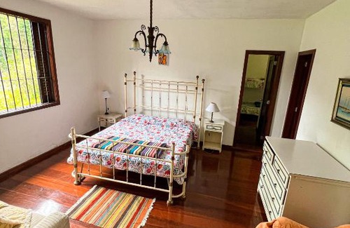 6.4 miles from Petropolis Bus Station in Petrópolis, Chale das hortensias features accommodations with access to a sauna and hot tub. With garden views, this accommodation provides a swimming pool. There's a sun terrace and guests can use free Wifi and free private parking. Featuring a patio and mountain views, the spacious vacation home includes 4 bedrooms, a living room, satellite flat-screen TV, an equipped kitchen, and 3 bathrooms with a shower. Guests can take in the ambience of the surroundings from an outdoor dining area or keep warm by the fireplace on colder days. For added privacy, the accommodation features a private entrance. Guests can make the most of the warm weather with the property's barbecue facilities. The vacation home has a picnic area where you can spend the day outdoors. Cathedral of St. Peter of Alcantara is 10 miles from the vacation home, while Free Flight Ramp of Simeria is 14 miles from the property. Rio de Janeiro/Galeao International Airport is 44 miles away.