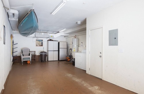 First Level: Begin your stay in the heated two-car garage, complete with a full-sized washer and dryer and a tuning bench for maintaining your gear.