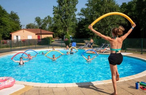 a swimming pool, paddling pool area, and a bar/snack bar available,