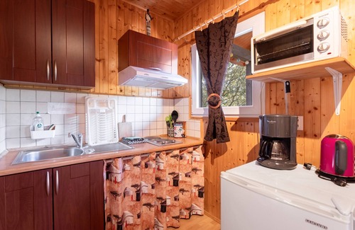 In Rouffiac-des-Corbières, the chalet offers an excellent view of the mountain and the Peyrepertuse castle. The 27 m² property consists of a kitchen with dining room, two bedrooms, one with a bunk bed and a shower room and can therefore accommodate 4 people. The common room allows you to benefit from a washing machine, television, board games, brochures as well as books and toys for children.