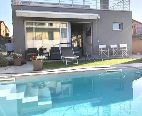 Chalet al mare is located in Mondolfo, just a 3-minute walk from Marotta Beach and 27 miles from Stazione Ancona. Guests may go for a swim in the private pool. The vacation home also offers free Wifi, free private parking, and facilities for disabled guests. The air-conditioned vacation home consists of 4 bedrooms, a living room, a fully equipped kitchen with a dishwasher and a coffee machine, and 5 bathrooms with a shower and bathrobes. Towels and bed linen are featured in the vacation home. The property offers sea views. There is a garden with a barbecue at this property, and guests can go cycling and hiking nearby. Senigallia Train Station is 4.2 miles from the vacation home, while Adriatic Arena is 22 miles away. Marche Airport is 21 miles from the property.