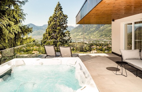 Chalet "Apt Penthouse - Schenna Chalet" with Pool, Whirlpool and Spa Access is located in Schenna. Chalet "Apt Penthouse - Schenna Chalet" with Pool, Whirlpool and Spa Access provides accommodation, featuring View, Private Pool, Oceanfront, among other amenities. This Apartment features View, Private Pool, Oceanfront, to make your stay a comfortable one.