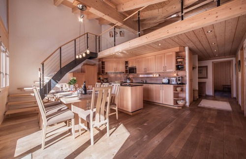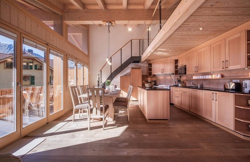 This new, high-end top floor apartment at Chalet Aquila is an extremely appealing and convenient option for central accommodation in Wengen. A ski-in / ski-out property, it is located at the top of the village ski slope, yet is only steps away from restaurants and the train station or cable car.