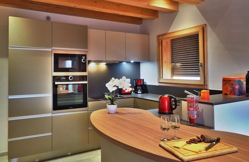 Luxurious chalet with contemporary comfort with large windows and balconies offering magnificent views of the mountains. It consists of 2 large contiguous apartments Arpitan 1 and 2 both with fireplace, large living rooms and fully equipped kitchens. Smart tv with French and international channels, wifi throughout the chalet.