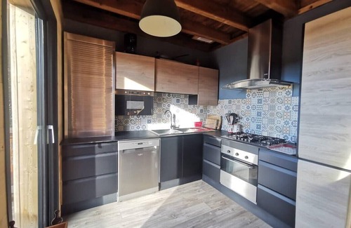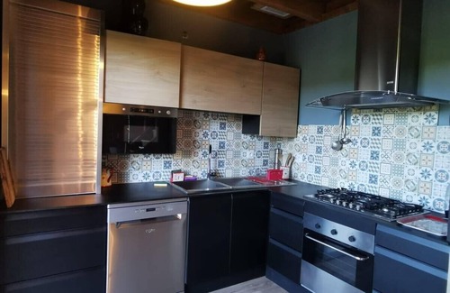 Warm chalet for 12 people with large living room with fully equipped kitchen (oven, dishwasher, coffee maker, microwave, fridge, freezer, washing machine)