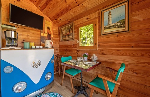 The chalet avec jardin vue mer 100m with step-free access and interior is located in Plougastel-Daoulas and boasts a beautiful view of the Atlantic. The 22 m² property consists of a living room, a well-equipped kitchen, 1 bedroom and 1 bathroom and can therefore accommodate 2 people. Additional amenities include a TV. This accommodation does not offer: Wi-Fi and air conditioning. This chalet offers a private outdoor space with a garden, terrace, and barbecue.