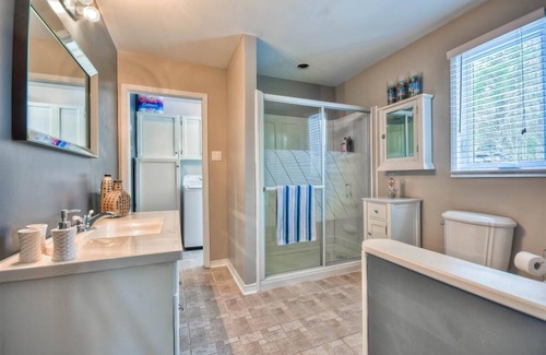 As you settle into this 4-bedroom, 2-bathroom rental, you'll find a fireplace, air conditioning, and a desk. Bathroom amenities include a hair dryer, towels, and toilet paper. Prepare a home-cooked meal in the kitchen, complete with an oven, a stovetop, and a refrigerator, as well as a coffee maker, an electric kettle, and a microwave. And because there's a washer and dryer, you can go a bit lighter on your packing.