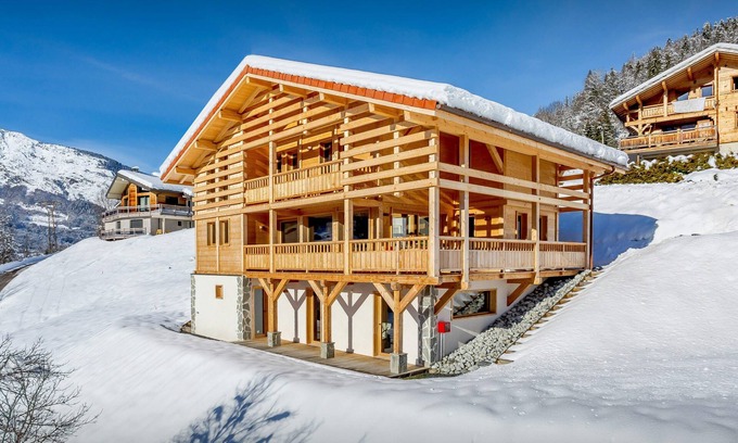 Chalet Belle Cour - Manigod ski base for 10, mountain views - OVO Network is located in Manigod. Chalet Belle Cour - Manigod ski base for 10, mountain views - OVO Network provides accommodation, featuring Security/Safety, Wellness Facilities, Fireplace/Heating, among other amenities. This Ski Chalet features Security/Safety, Wellness Facilities, Fireplace/Heating, to make your stay a comfortable one.
