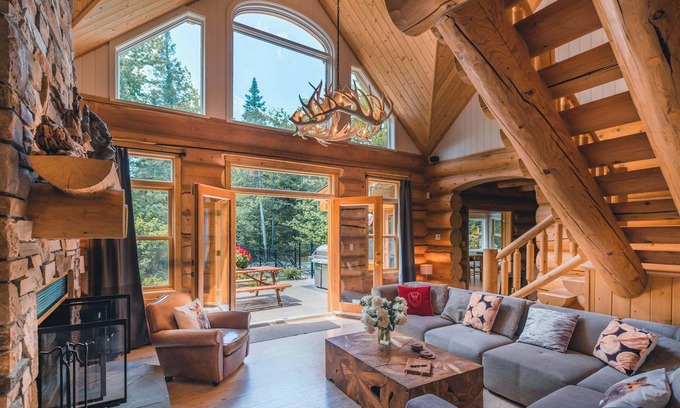 Chalet Black Eagle is a stunning, fully renovated log cabin located in the prestigious Fiddler Lake Resort, near Morin Heights in the Saint-Sauveur Valley. Ideal for groups of up to 12 people, the chalet is set on one of the few private lakefront lots in the domain, with an area of over 70,000 square feet. Sheltered from neighbours and prying eyes, you are guaranteed peace, privacy, and the perfect opportunity to fully enjoy your vacation!