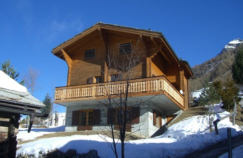 Above the rooftops of Randa - 10 km from Zermatt - located chalet with stunning views towards Kleinmatterhorn and adjacent four-thousander, Eldorado for mountain walkers, climbers and hikers. Cozy, well equipped house with 2 double bedrooms, 2 bathrooms (1 large bathroom with tub and shower and a shower room), kitchen with dishwasher, large living room with fireplace and large wrap-around balcony), electric underfloor heating