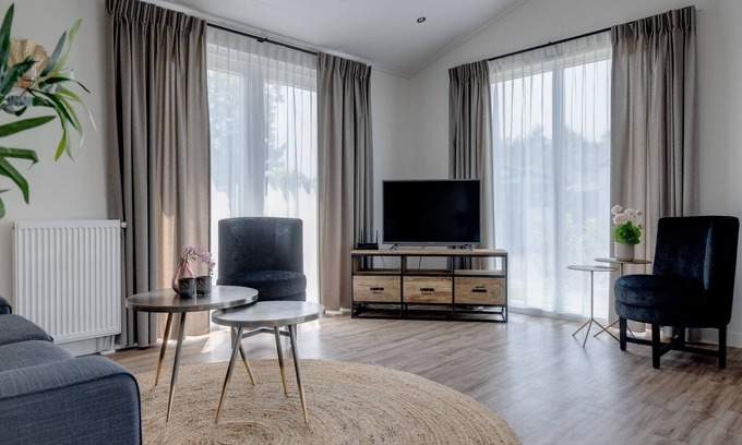 Welcome to your cozy retreat by the pond in Veldhoven! This beautifully designed chalet combines high ceilings, expansive windows, and thoughtful furnishings to create a spacious and serene stay. The open-plan living area flows into a fully equipped kitchen, ideal for group meals and lazy mornings. With three inviting bedrooms featuring flexible box-spring setups, there’s comfort for families, friends, or couples traveling together. Step out onto your private terrace overlooking the peaceful pond—perfect for relaxing with a morning coffee or glass of wine.