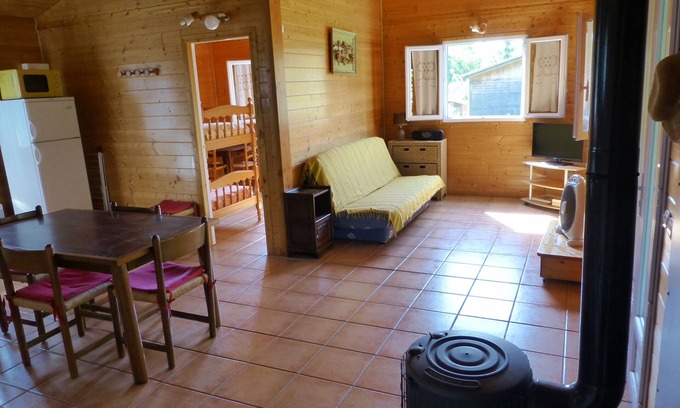Chalet located in the Cévennes National Park (labeled "Esprit Parc") in the middle of a small family farm of 100% natural vines...Chalet (60M²) single-storey wooden frame (classified as furnished tourist accommodation). The layout is very functional...two separate bedrooms, full kitchen equipment, 80cm flat screen TV, WIFI Internet, network access for all mobiles.
