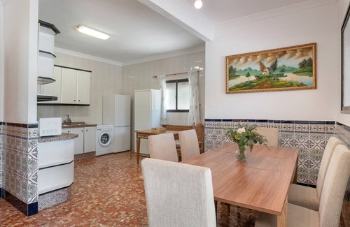 The chalet "Casa El Molino", which is situated in Montecorto, overlooks the nearby mountain. The 2-storey property consists of a living room with a sofa bed for 2 people, a well-equipped kitchen with a dishwasher, 5 bedrooms and 2 bathrooms as well as an additional toilet and can therefore accommodate 15 people. Additional amenities include high-speed Wi-Fi (suitable for video calls), a smart TV with streaming services, air conditioning as well as a washing machine. A baby cot and a high chair are also available.