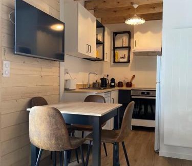 Providing a garden, Chalet chaleureux et fonctionnel features accommodations in Laguiole. This property offers access to a terrace and free private parking. Outdoor seating is also available at the apartment. With free Wifi, this 1-bedroom apartment provides a flat-screen TV, a washing machine, and a fully equipped kitchen with a dishwasher and oven. Towels and bed linen are featured in the apartment. There's also a seating area and a fireplace. For guests with children, Chalet chaleureux et fonctionnel offers an indoor play area and a baby safety gate. A ski equipment rental service, ski-to-door access, and a ski pass sales point are all provided at the accommodation, and guests can go skiing in the surrounding area. Casino Chaudes Aigues is 19 miles from Chalet chaleureux et fonctionnel. Rodez - Aveyron Airport is 42 miles away.