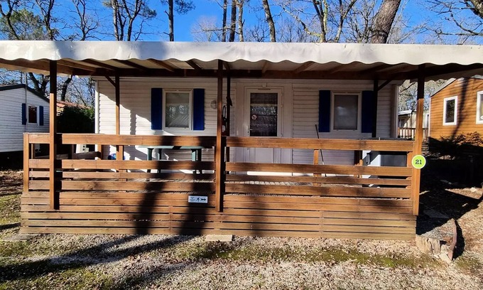 Electricity package : 7.90€ from 01/01/23 to 20/05/23 and from 17/09/23 to 31/12/23 / 3€ from 21/05/23 to 16/09/23 - to be paid on site Television : included in certain types of accommodation Tennis Multisports ground : volleyball, basketball, football Pets Allowed Barbecue Cooked Microwave oven Number of bedrooms : 2 Number of toilets : 1 Number of bathroom : 1 Surface (m²) : 35 Television Terrace Number of pieces : 3