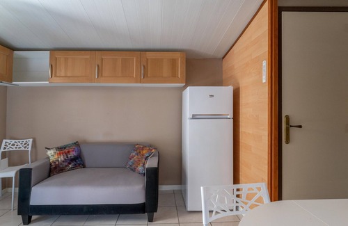 Gîte in a small chalet comprising a main room with a fully equipped kitchen (induction hob, microwave, kettle, coffee machine, toaster, dishwasher, washing machine, fridge with small freezer). You will find a bedroom with a 160cm double bed, a separate toilet and bathroom with a walk-in shower. A shaded terrace overlooks a lush garden and a small pond, which you have direct access to. A small bedroom located 25 meters away, perched in a tree, accessible via an easy staircase, includes a 140cm double bed with a water point and a composting toilet at the foot of the tree. This small room is not suitable for unaccompanied children under 14 years old.