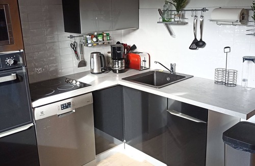 As you settle into this 4-bedroom, 2-bathroom rental, you'll find a dining area, a BBQ grill, and a desk. The kitchen is equipped with an oven, a stovetop, and a refrigerator, as well as a coffee maker, an electric kettle, and a microwave.