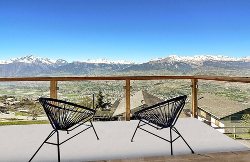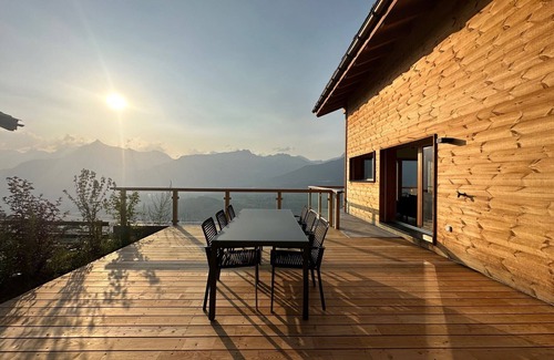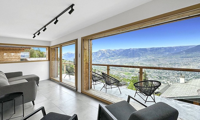 Welcome to Chalet Commaraf, a brand new modern chalet nestled in a natural setting, with a breathtaking 180° view of the Rhône Valley and the majestic Bernese Alps.