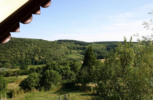 Lovely contemporary chalet (built in 2004) backing onto a "balcony" & "panoramic belvedere", on a well-exposed south-east hillside, in a peaceful rural residential hamlet overlooking the verdant Méchet valley (& its fish-filled river) . Calm & total tranquility in the heart of the Morvan countryside & its gentle mountains, in the very heart of the park and the Morvan massif, nestled on the immediate edge of the woods in the hollow of a bucolic valley preserved with fields & meadows surrounded by vast wild forest massifs (to be explored during relaxing walks or mountain bike rides). Magnificent preserved setting of nature & greenery. The privilege of being able to observe wildlife on site (deer, foxes, badgers, wild boars, etc.). Totally enchanting landscaped setting, 100% relaxing & rejuvenating. Natural garden with trees and vegetation, nestled behind a "plant barrier", including a shaded terrace area under a mulberry tree & a "mini meadow" with a swing (located below the chalet). Double large sheltered panoramic balcony. Superb unobstructed view of the surrounding countryside including the city of Autun and its night lights in the background. Magnificent panorama & landscapes. Spacious, comfortable gîte. Warm & very cozy wooded mountain character. Soft & exotic atmosphere. Pleasant rooms nestled under the roof in cocoon cabin mode. Composition: Detached house on 2 levels. Electric heating + fireplace. Ground floor (2 steps): living room-kitchen-lounge (extra 140x190cm BZ 2 p. convertible sofa), bathroom (shower), separate toilet. 1st floor: 2 bedrooms (double bed 160x200cm / 3 single beds 90x190cm), separate WC. Double sheltered balcony (one on each floor) + bicycle storage + natural grounds with furnished terrace space & swing + private parking. Shops including supermarket 10 km. All amenities including supermarkets 18 km.