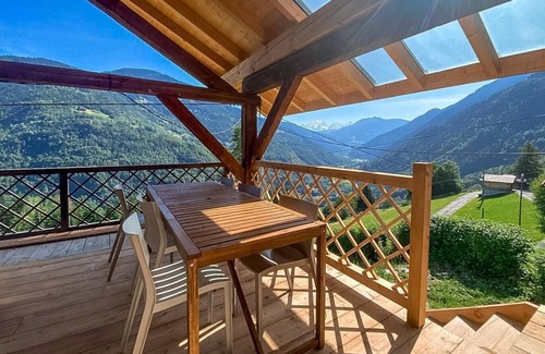 - 35 m² detached wooden chalet with terrace overlooking the mountains