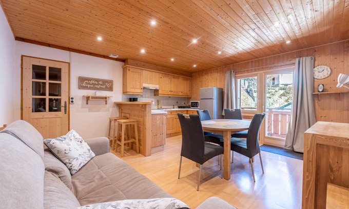 In La Giettaz, Cocoonr/Book&Pay Agency offers you this charming 47 m² chalet in the “Les portes du Mont-Blanc” ski resort (accessible by free shuttle bus at the foot of the chalet), which can accommodate up to 7 guests. Located on the 2nd and top floor (no elevator), it comprises a lovely living room, an open-plan fitted kitchen, two bedrooms and a bathroom (with shower). Wifi included, we're waiting for you!