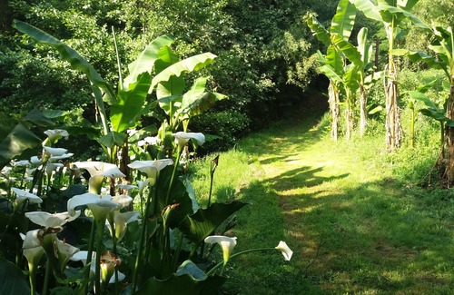 This garden, bordered by a small stream is embellished by many plants: banana trees, arums, lilies, hydrangeas, etc ...