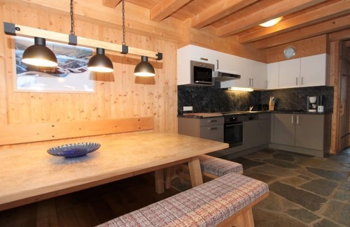 "Chalet Elisabeth", 5-room chalet 120 m2 on 2 levels. Comfortable and tasteful furnishings: entrance hall. 1 double bedroom with shower/WC. Large living/dining room 35 m2 with dining table and satellite TV (flat screen), radio and CD-player. Open kitchen (oven, dishwasher, 4 ceramic glass hob hotplates, microwave, freezer). Shower, sep. WC, Sauna. Upper floor: 2 double bedrooms, each room with shower/WC. 1 room with 1 bed, 1 double bed and shower/WC. Underfloor heating. Wooden floors, natural stone floors. Terrace. Terrace furniture, barbecue. Beautiful view of the mountains. Facilities: children's high chair, baby cot. Internet (WiFi). Parking (roofed, 3 cars). Please note: non-smoking house. High quality furnishing with handcrafted furniture from the master carpenter. Important: The house can be occupied by a maximum of 9 people and 1 baby up to 2y.