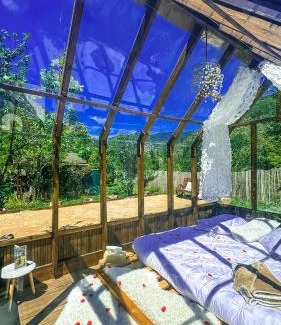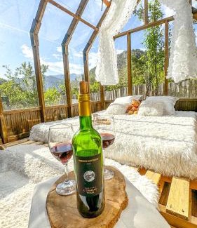 Chalet en verre sous une pluie étoilée offers accommodations in Lantosque, 27 miles from Allianz Riviera Stadium. Both free Wifi and parking on-site are accessible at the luxury tent free of charge. The accommodation provides private check-in and check-out and bicycle parking for guests. Guests can take in the views of the mountain from the terrace, which also has outdoor furniture. For added privacy, the accommodation features a private entrance. A selection of options including local specialities, fresh pastries, and fruit are available for breakfast, and breakfast in the room is also available. There is a coffee shop, and packed lunches are also available. For guests with children, Chalet en verre sous une pluie étoilée features outdoor play equipment. Guests at the accommodation can enjoy cycling and hiking nearby, or make the most of the garden. Nice Côte d'Azur Airport is 32 miles from the property.