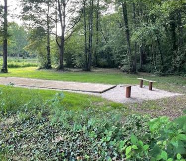 Chalet et étangs 2 chambres is located in Henrichemont, just 19 miles from Esteve Museum and 20 miles from Palais des Congrès de Bourges. Providing a garden, the property is located within 18 miles of Bourges Station. National School of Arts Bourges is 19 miles away and Cathedrale St-Etienne is 19 miles from the vacation home. This air-conditioned 1-bedroom vacation home comes with a seating area, a flat-screen TV, and a fully equipped kitchen with a dishwasher. Guests can take in the views of the lake from the terrace, which also has outdoor furniture. For added privacy, the accommodation features a private entrance. Vierzon train station is 27 miles from the vacation home, while Institute of Technology Bourges is 18 miles away. Tours Loire Valley Airport is 109 miles from the property.