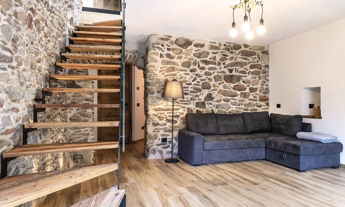 A charming stone chalet, carefully renovated to preserve the original character of the building while transforming it into a modern, comfortable, and sustainable home. Stone walls, antique wooden doors, and custom-made furnishings create a warm, welcoming, and authentic atmosphere.