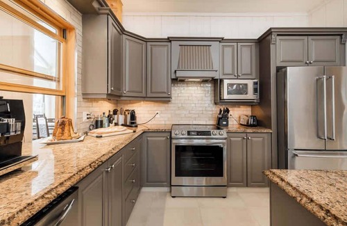 This very spacious chalet features 6 bedrooms, 3 full bathrooms, and 1 indoor wood-burning fireplace. It can comfortably accommodate up to 16 people. The kitchen is equipped with stainless steel appliances, including a dishwasher and a microwave. Other amenities such as satellite TV, unlimited high-speed Starlink Wi-Fi, a pool table (convertible to a ping pong table), and a washer and dryer are also provided. An outdoor fire pit area with comfortable chairs for relaxation is accessible during three seasons.