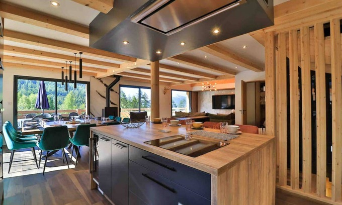 Best-rates for the Les Orres ski chalet starts from $921 per night with includes Bedding/Linens, Wellness Facilities, Fireplace/Heating, Balcony/Terrace, Security/Safety, Barbecue/Outdoor Cooking, Child Friendly, Hot Tub, Laundry, Sports/Activities, Internet, Kitchen, Parking, TV, Guest Services with all other amenities. Perfect for Weddings is committed to ensuring every guest experiences a comfortable and extraordinary stay, whether planning a romantic getaway, a honeymoon, a pet-friendly stay, or celebrating with the entire wedding party.
