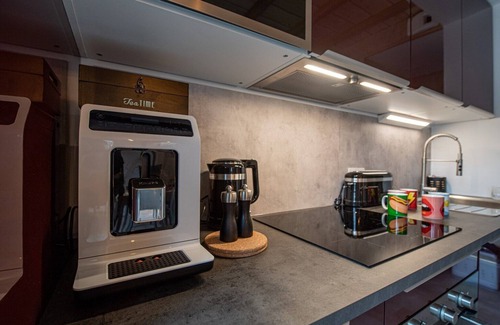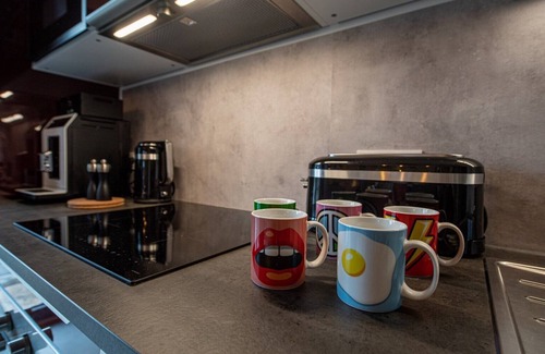 Prepare a home-cooked meal in the kitchen, complete with an oven, a stovetop, and a refrigerator, as well as a coffee maker, an electric kettle, and a microwave. Bathroom amenities include a hair dryer, towels, and toilet paper. And because there's a washer and dryer, you can go a bit lighter on your packing. Other amenities include bed sheets, an ironing board, and heating.